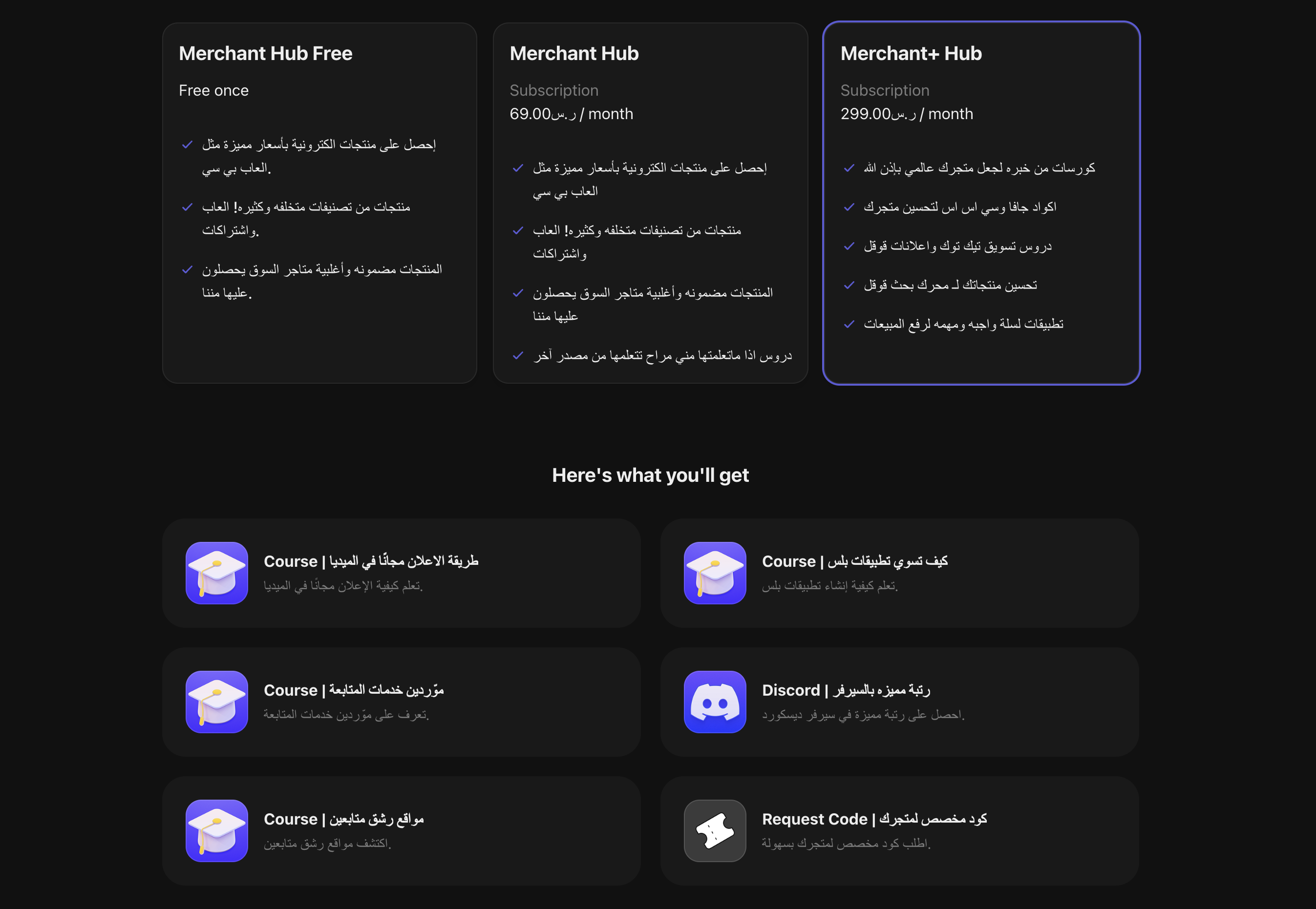 تعتبر منصة Merchant Hub فرصة مثالية للتجار الطموحين الذين يسعون لتعزيز أرباحهم والاستفادة من أحدث الأدوات والخدمات في عالم التجارة الرقمية. سواء كنت تفضل الخطة المجانية للاطلاع على الإعلانات أو ترغب في الحصول على المزايا الكاملة مع خطة +Merchant Hub، ستجد كل ما تحتاجه لتطوير أعمالك ورفع مستوى تجارتك.
